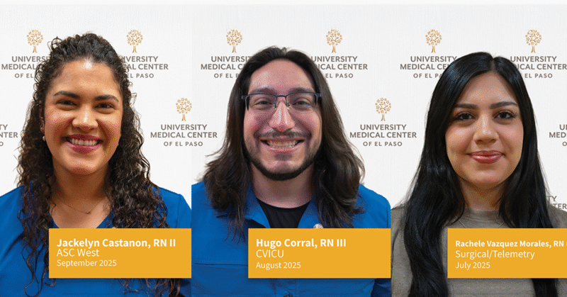 El University Medical Center of El Paso (UMC) se enorgullece de reconocer a los homenajeados del Premio DAISY del tercer trimestre de 2025. Nos complace celebrar a nuestras más recientes enfermeras y enfermeros galardonados con este reconocimiento: