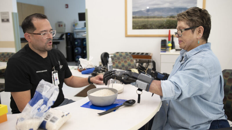 Recientemente, ambos viajaron a Ohio para reunirse con un proveedor de prótesis y ajustar prótesis mioeléctricas avanzadas para Vasquez.