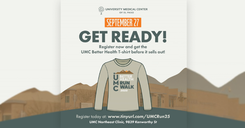 La UMC Better Health Run & Walk 2025 está a la vuelta de la esquina. Únase a nosotros el sábado 27 de septiembre en la Clínica Noreste de UMC para una mañana de acondicionamiento físico, comunidad y apoyo a una gran causa.