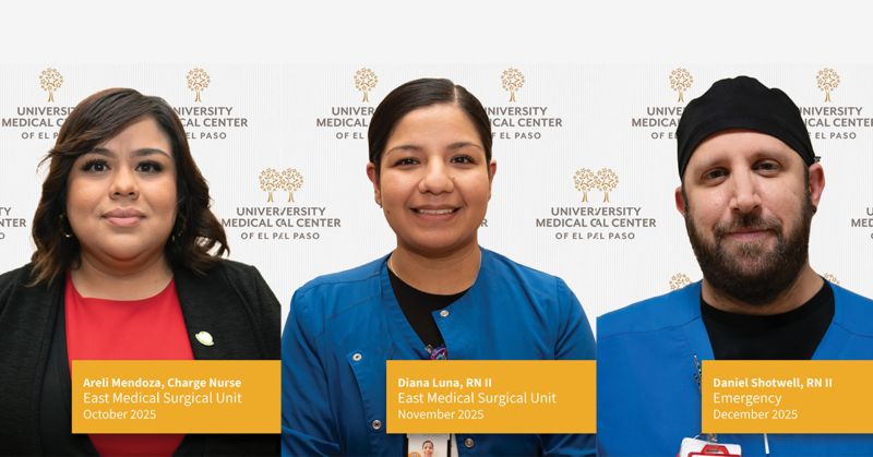 University Medical Center of El Paso se enorgullece de honrar a estos enfermeros por su compromiso con una atención centrada en el paciente y agradece el impacto positivo que generan cada día.